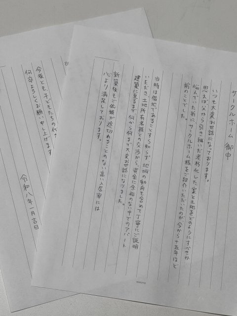 あのとき、ご紹介を通じてサークルホーム様に出会えていなければ、今はなかったと思っております。